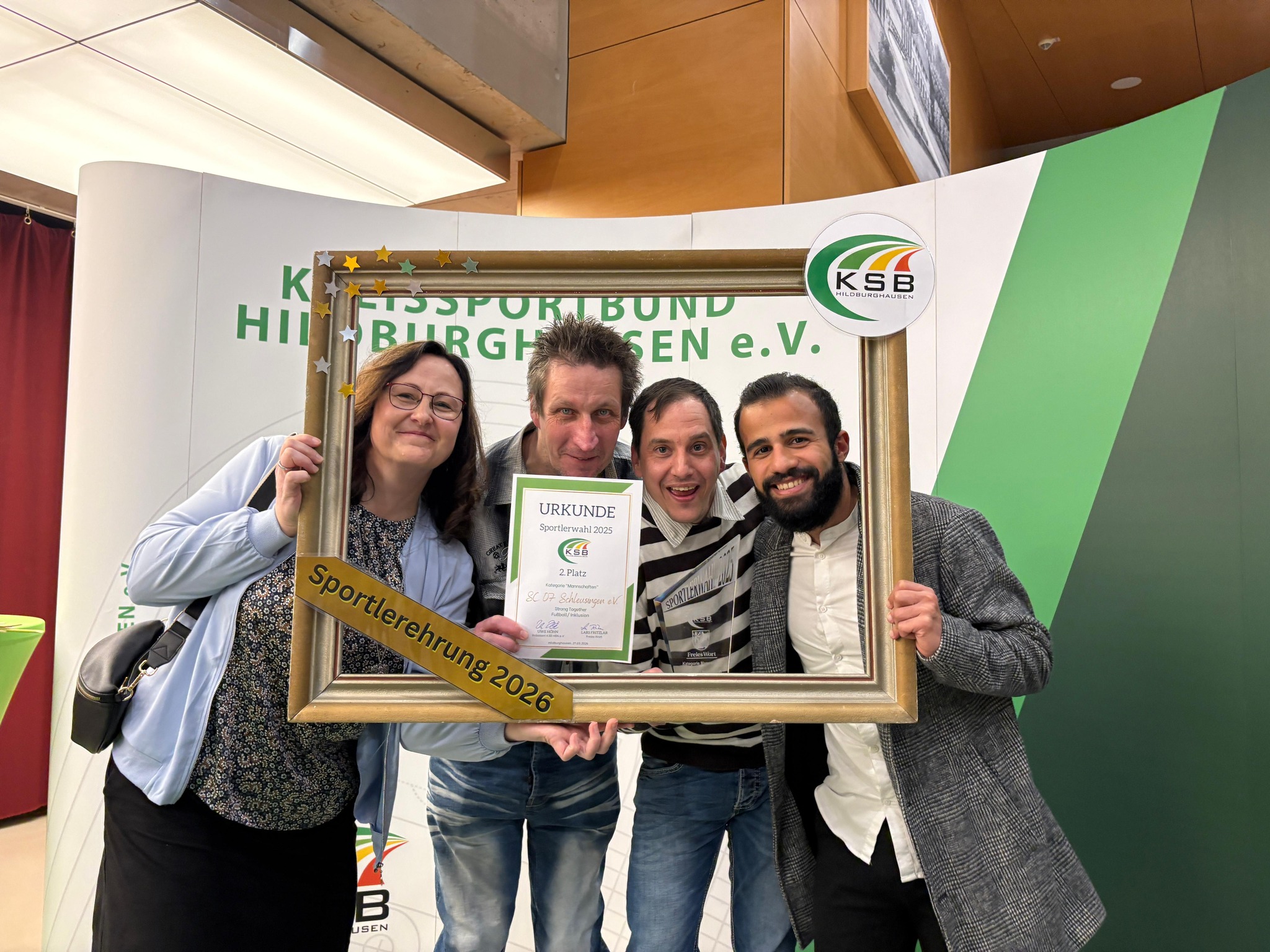 Unser Inklusions-Team „Strong Together“, in Zusammenarbeit mit dem @Stiftung Rehabilitationszentrum Thüringer Wald, wurde heute Abend bei der Sportlerehrung des Kreissportbund Hildburghausen e.V. sensationell als Zweiter bei der Wahl zur besten Mannschaft des Landkreises Hildburghausen 2025 ausgezeichnet!